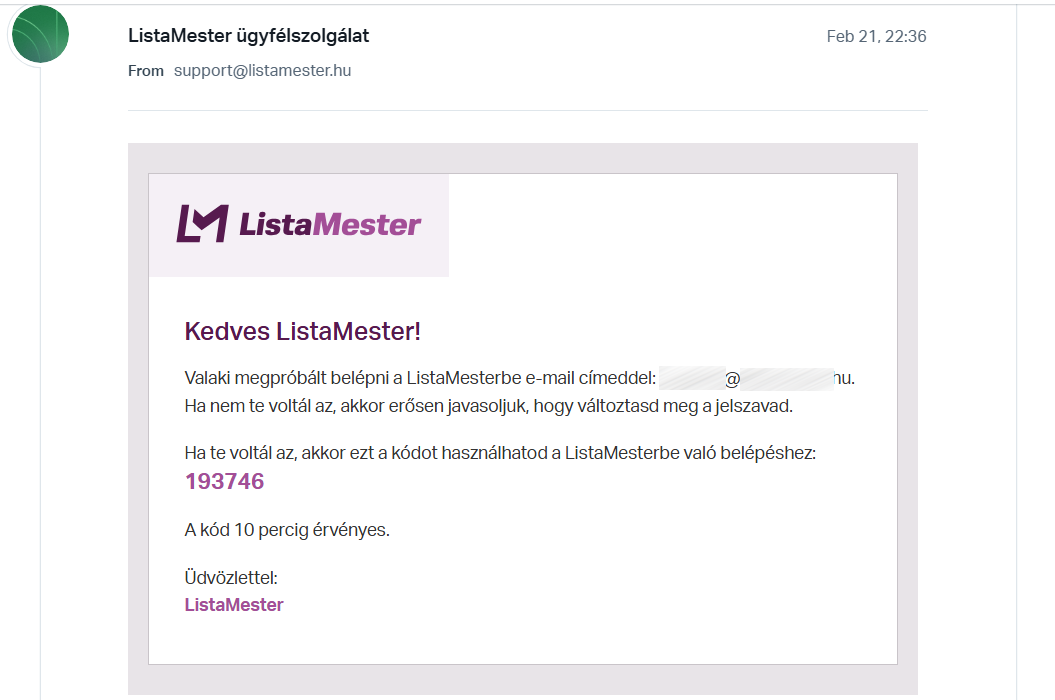 Tárgy: Belépési kód a ListaMesterbe