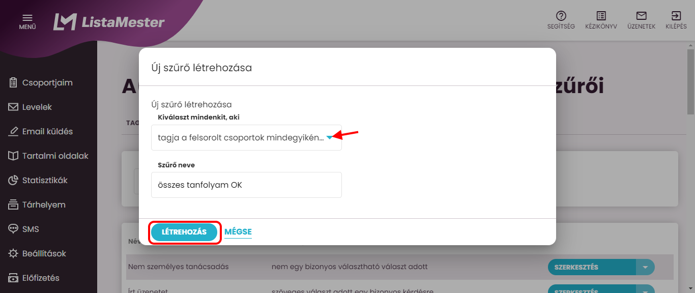 Így ha ki szeretnéd gyűjteni a legjobb „tanfolyamra befizetőket”, akkor ezt a szűrőt alkalmazva biztos lehetsz benne, hogy csak azokat fogja kijelölni a rendszer a tagok listájában, akik már minden korábbi tanfolyamodra befizettek.